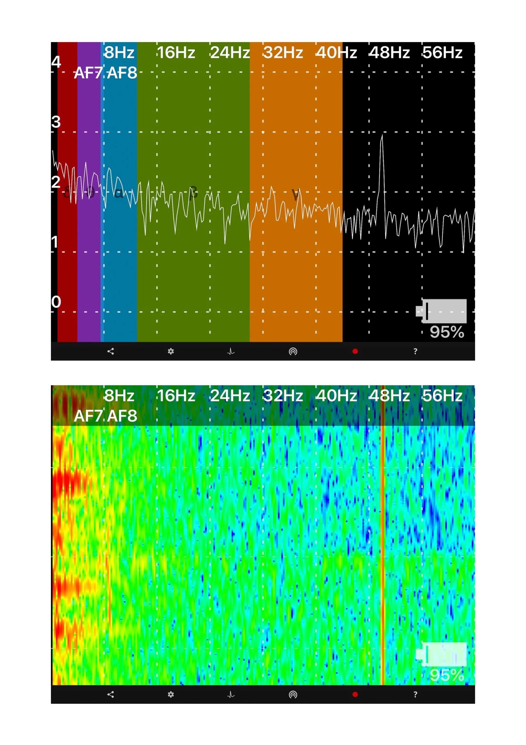 As you can see, the device measures brain waves in decibel (dB) in the first view, and in Herz (Hz) in the other two. What does this mean? If these waves were sound waves, the first view would be how loud the sound is, and the second to how hight the frequency is. What does it mean when it comes to brain waves? What does anything mean?