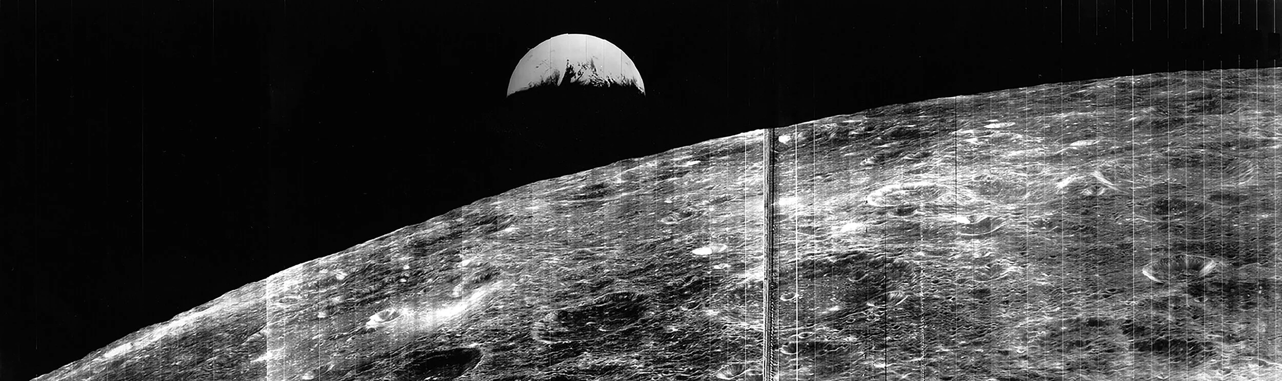 Lunar Orbiter 1 new of the Moon and crescent Earth, August 23, 1966. Image Credit: NASA