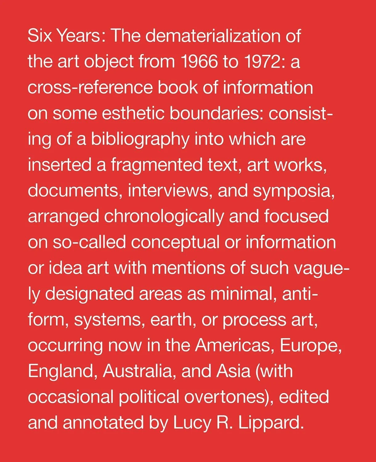 Book cover from Lucy Lippard, Six Years